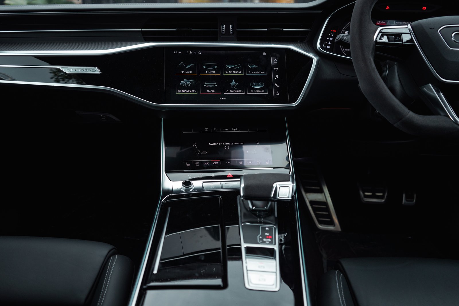 The Audi RS6 Black Carbon Edition is where brute performance meets refined sophistication. Beneath its bold and muscular silhouette lies a 4.0-liter twin-turbo V8 engine that delivers exhilarating power, perfectly balanced with Audi’s legendary Quattro all-wheel-drive system for unmatched control and confidence on any road.