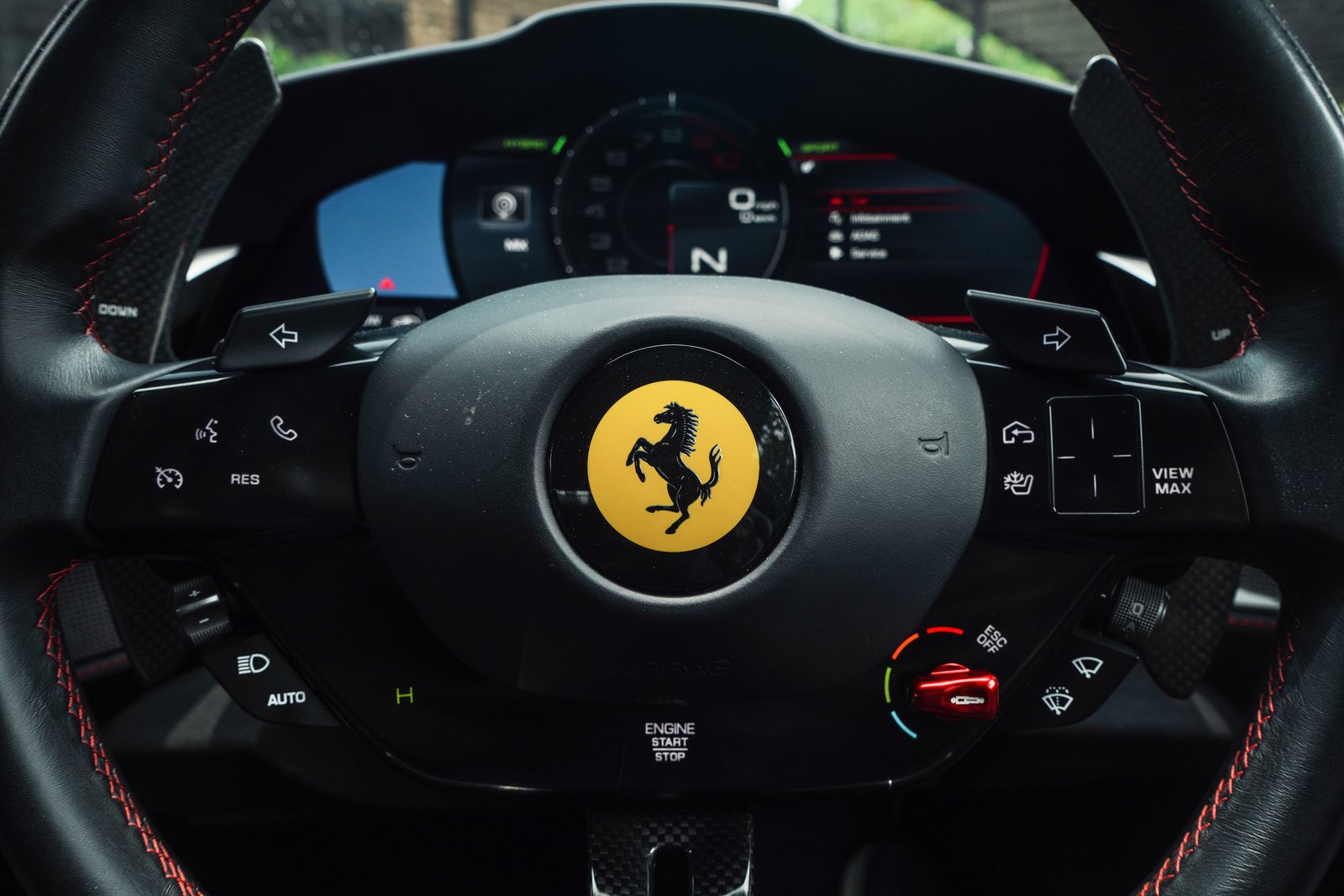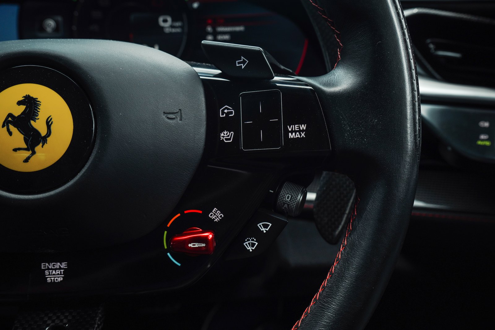 Inside, the SF90 Stradale introduces a next-generation cockpit, fully digital and driver-focused. Carbon fiber accents, premium leather or Alcantara, and touch-sensitive controls surround the driver in an environment inspired directly by Ferrari’s racing programs. It’s a cabin designed to deliver immersion, precision, and luxury in equal measure.