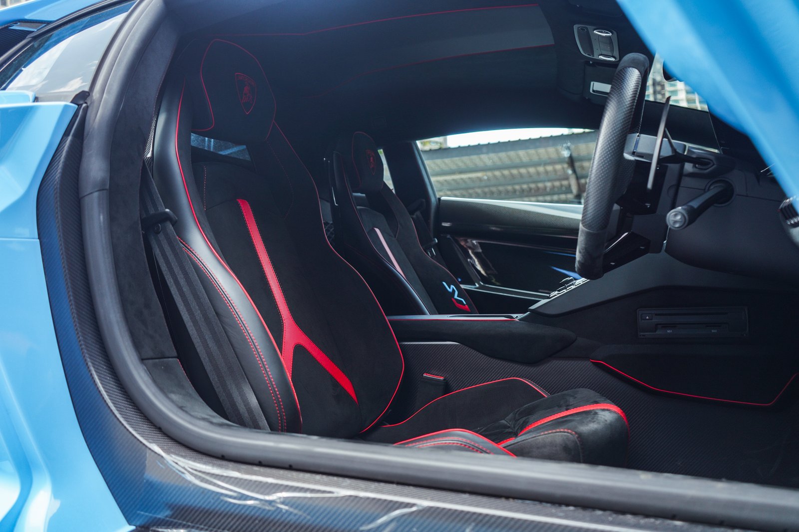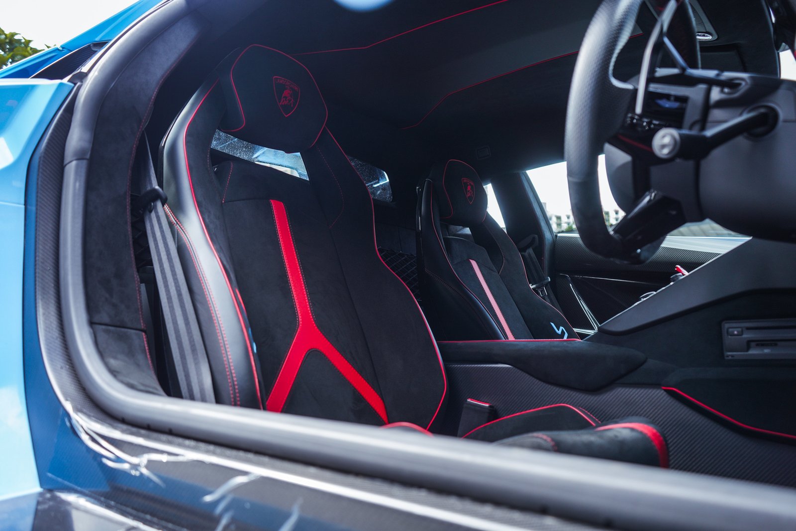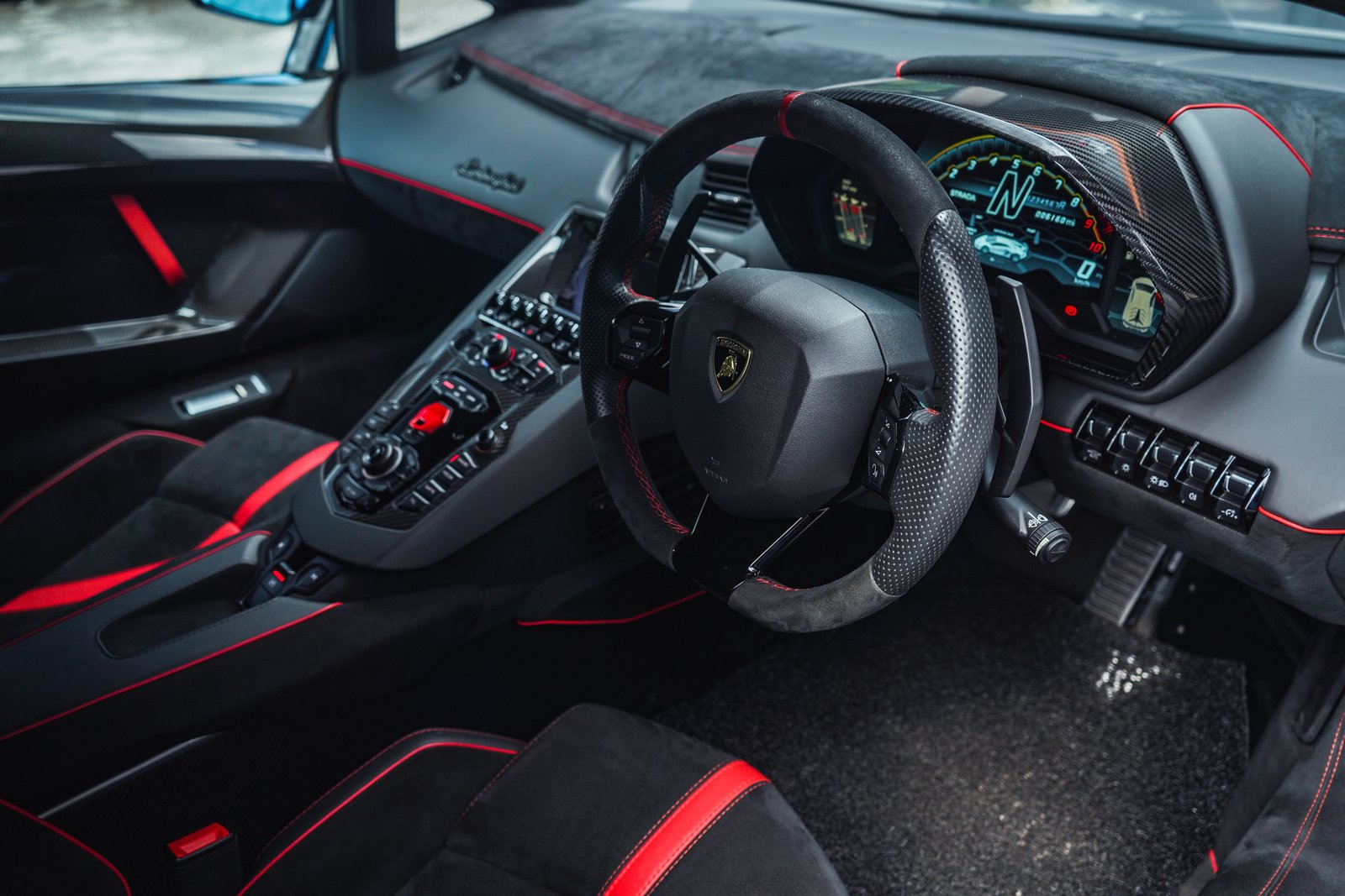 Step inside, and the SVJ welcomes you with a cockpit built for true drivers, Alcantara, carbon fiber, precision stitching, and Lamborghini’s fighter-jet inspired controls form an environment crafted for both intensity and exclusivity. It’s a space where luxury meets race-focused purpose.