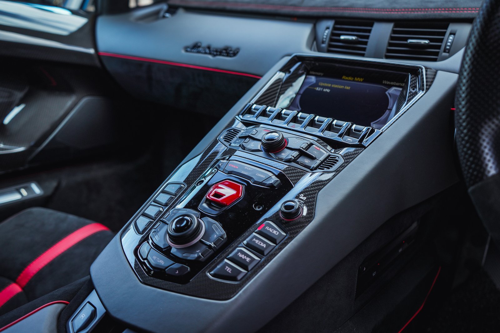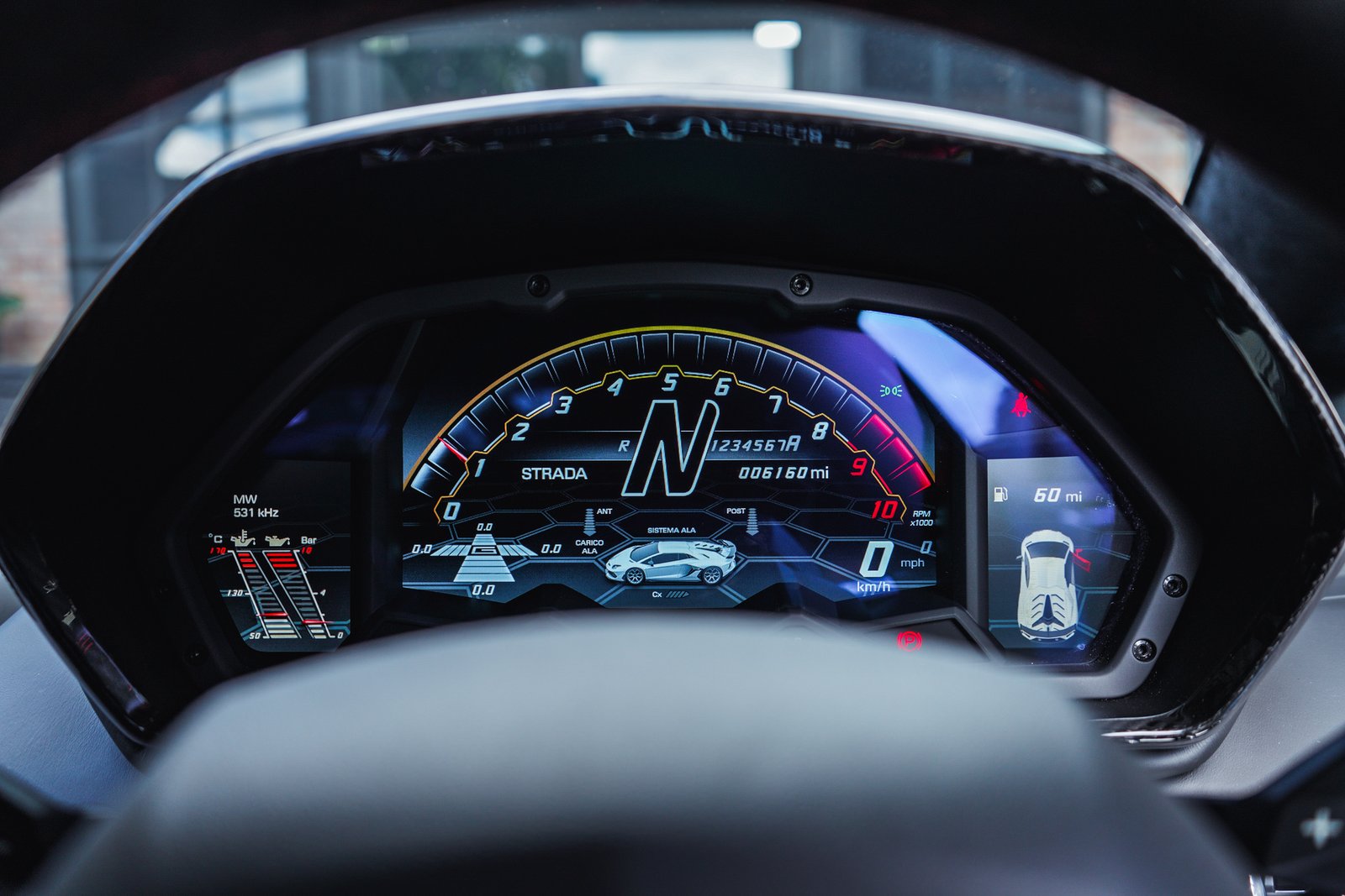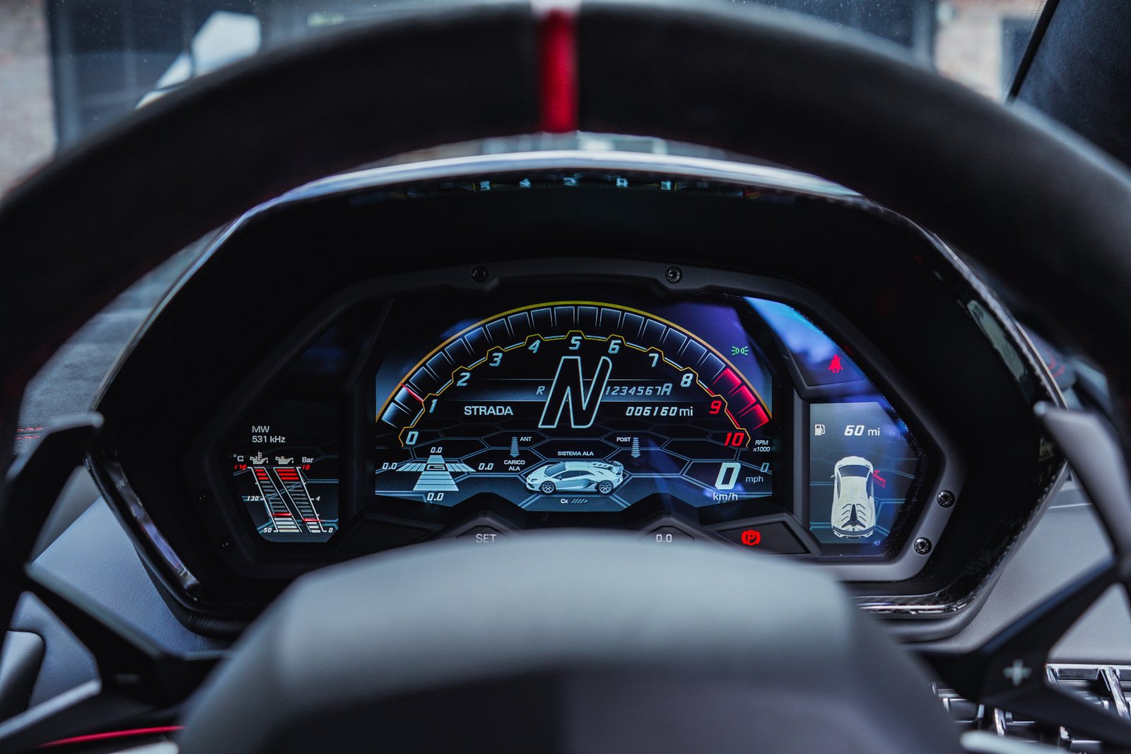 Step inside, and the SVJ welcomes you with a cockpit built for true drivers, Alcantara, carbon fiber, precision stitching, and Lamborghini’s fighter-jet inspired controls form an environment crafted for both intensity and exclusivity. It’s a space where luxury meets race-focused purpose.
