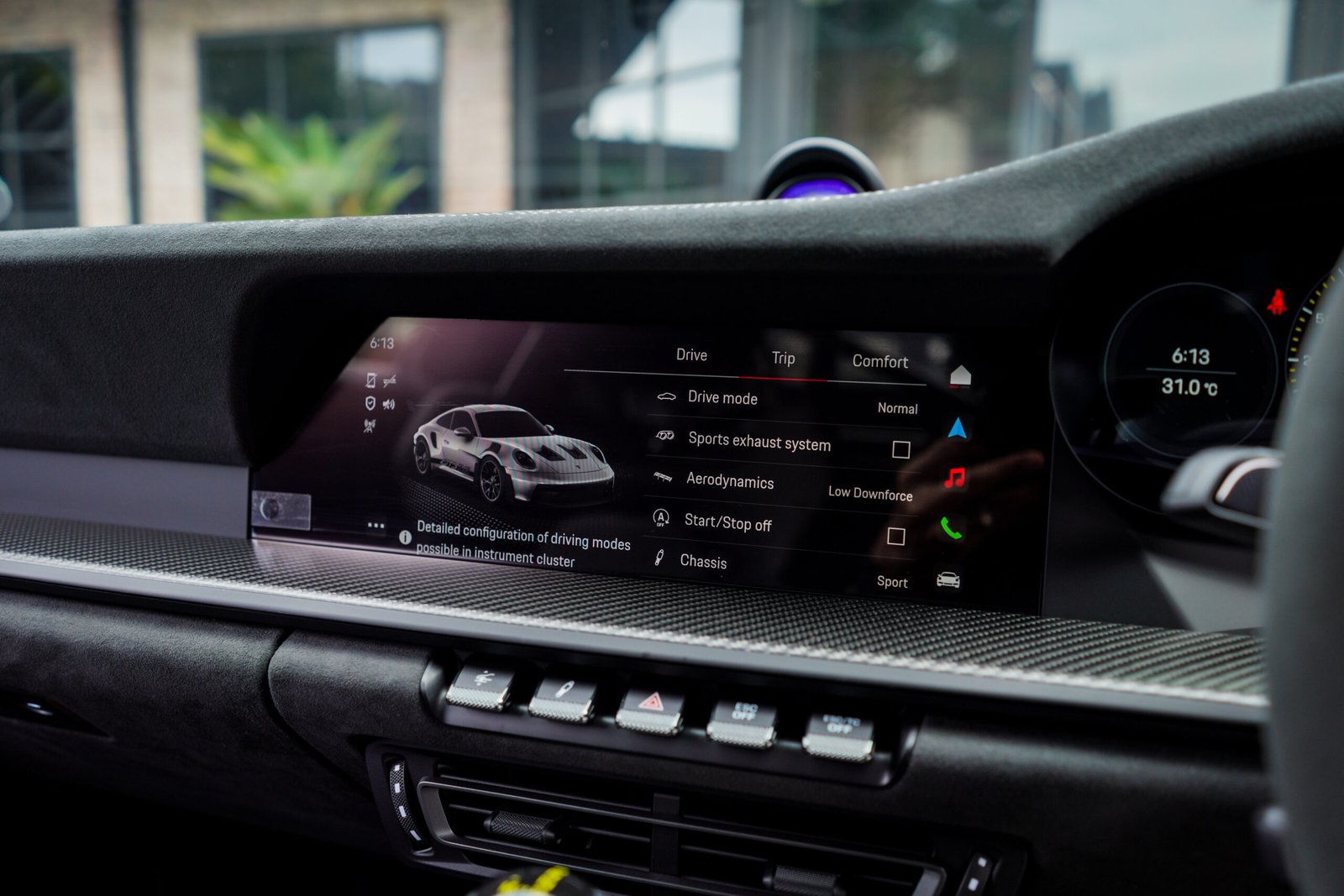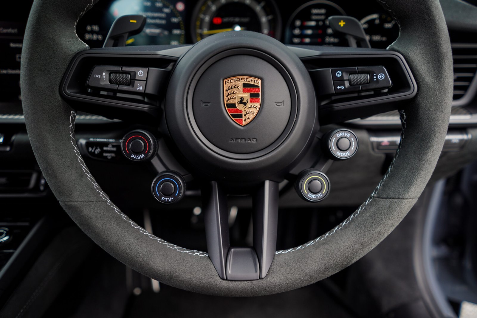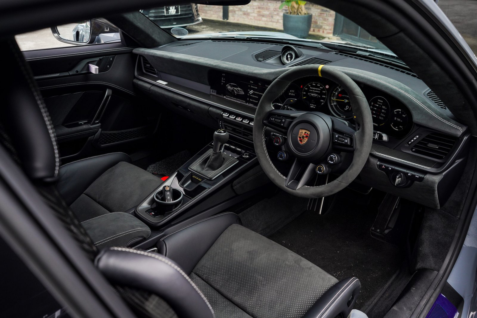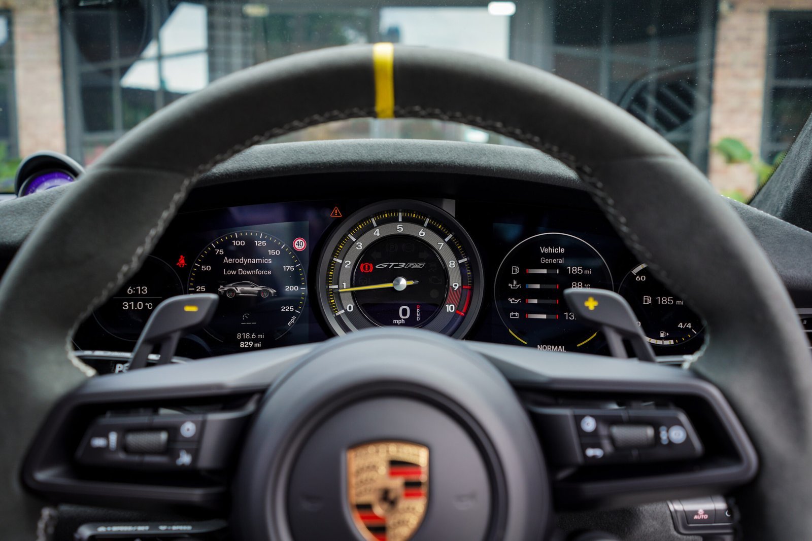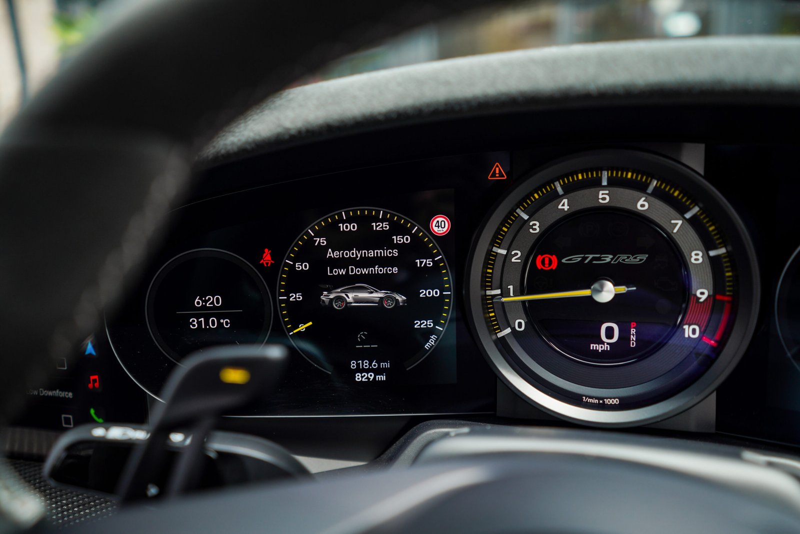 Inside, the GT3 RS offers a cockpit built for pure driving engagement. Lightweight materials, carbon fiber components, Alcantara trim, and motorsport-inspired details create a focused environment where function takes priority over excess, while still maintaining the refinement expected of a Porsche. It’s a space designed to connect driver and machine with uncompromised clarity.